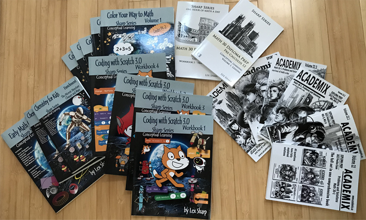 These packages include ready-to-use, colorful math and coding workbooks that complement digital learning with hands-on materials. The collection includes 'Color Your Way to Math', 'Coding with Scratch 3.0' workbooks, and various STEM-focused materials designed to enhance classroom engagement and conceptual learning. www.amazon.ca/stores/Lex-Sharp/author/B06XNNM3JF/allbooks