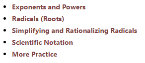 Radicals on lamar.edu: http://tutorial.math.lamar.edu/Classes/Alg/Radicals.aspx